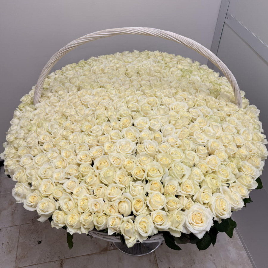 Букет из 501 белой розы в корзине «Нежность» в Назрани