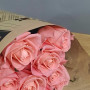 На фото букет из 9 коралловых роз. В составе: роза 9 шт, крафт-бумага 1 шт, атласная лента 2 шт, . Все цветы свежие и ароматные, букет красиво оформлен и отлично подходит для подарка. Доступна доставка цветов или самовывоз.